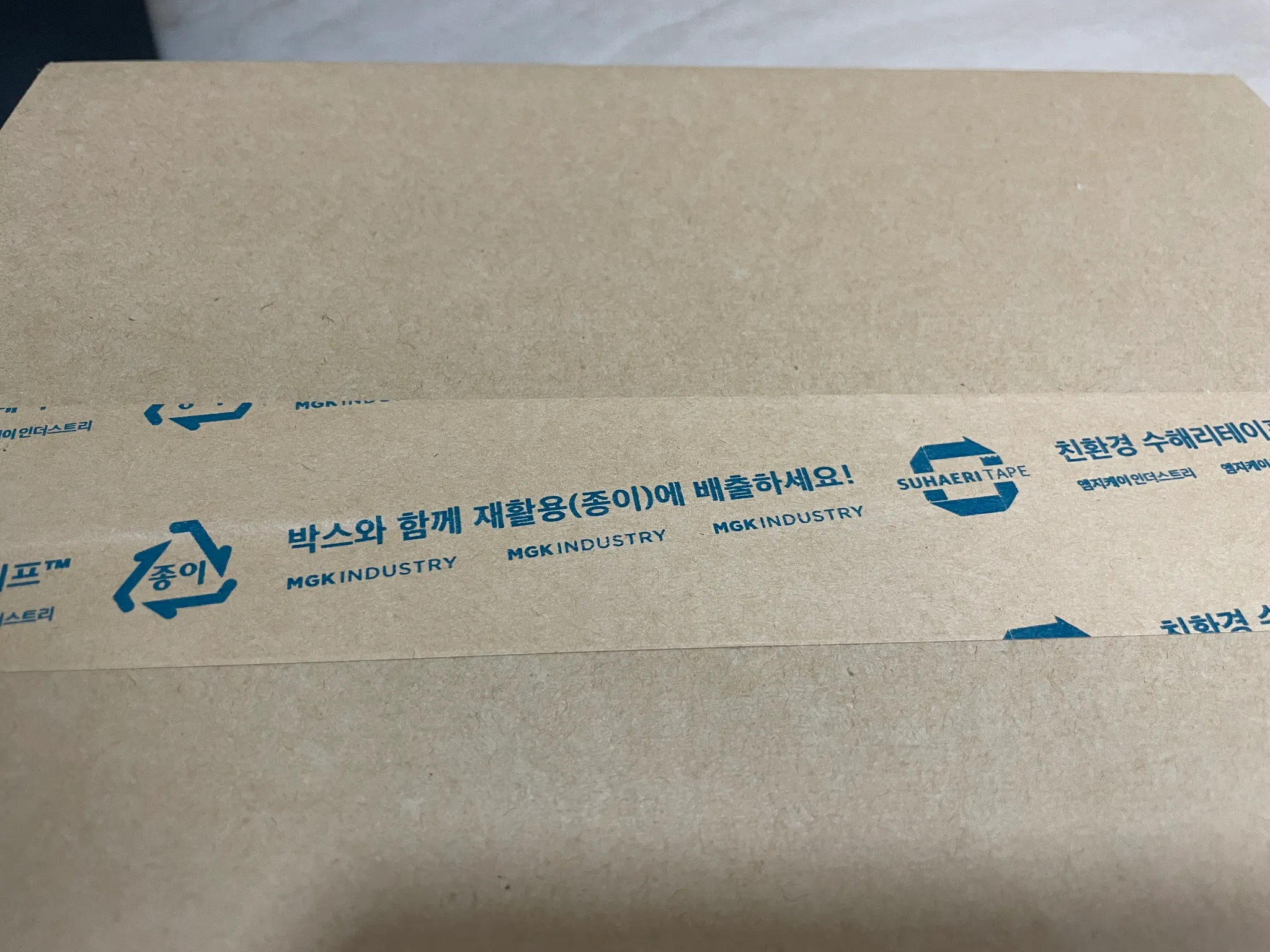 테이프의 문구대로 종이박스와 함께 종이 재활용으로 폐기하시면 됩니다.