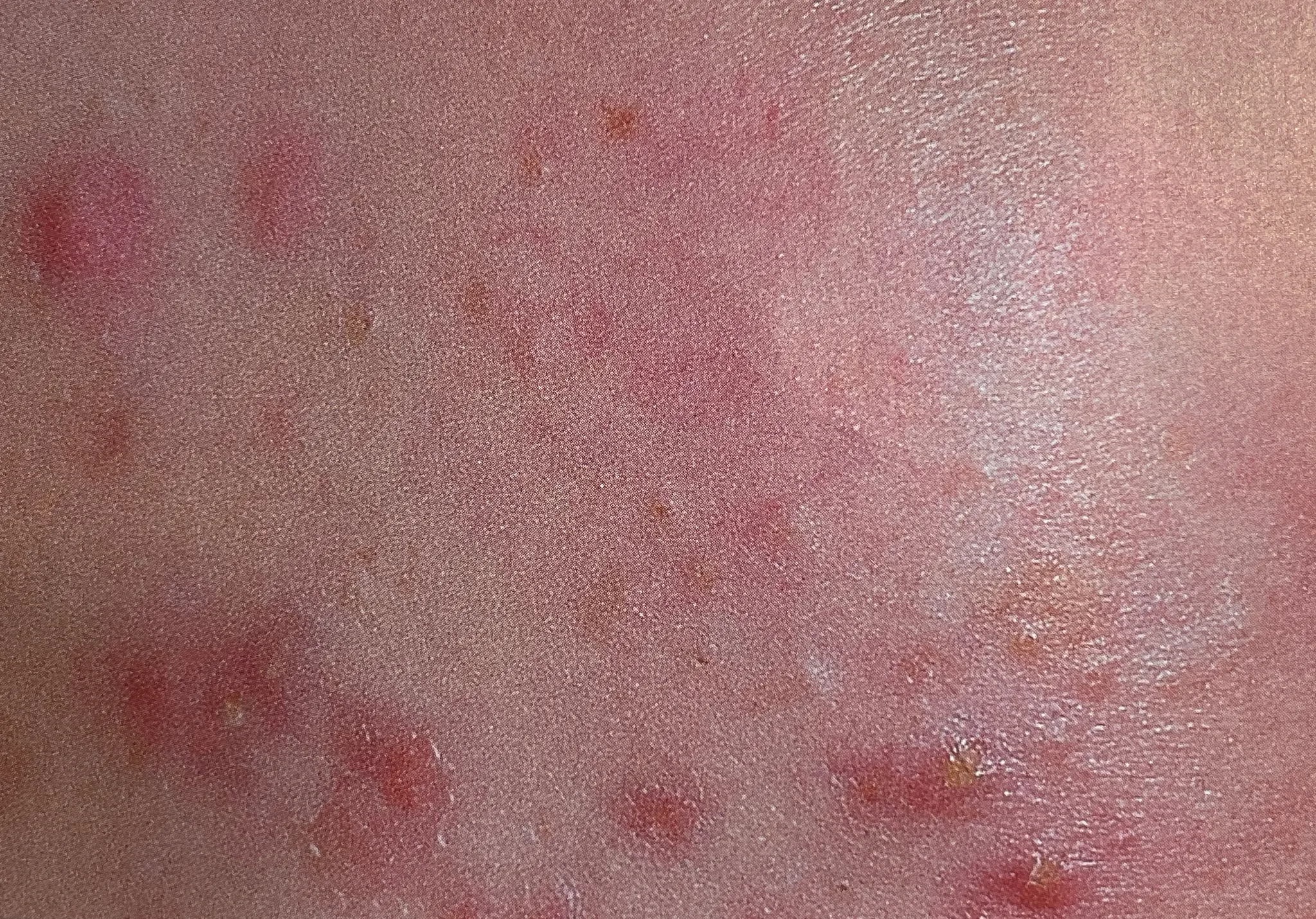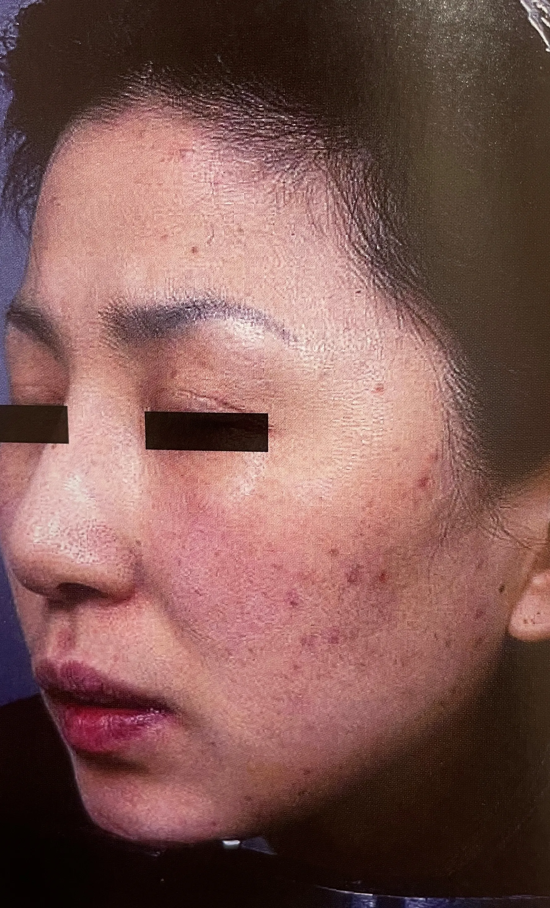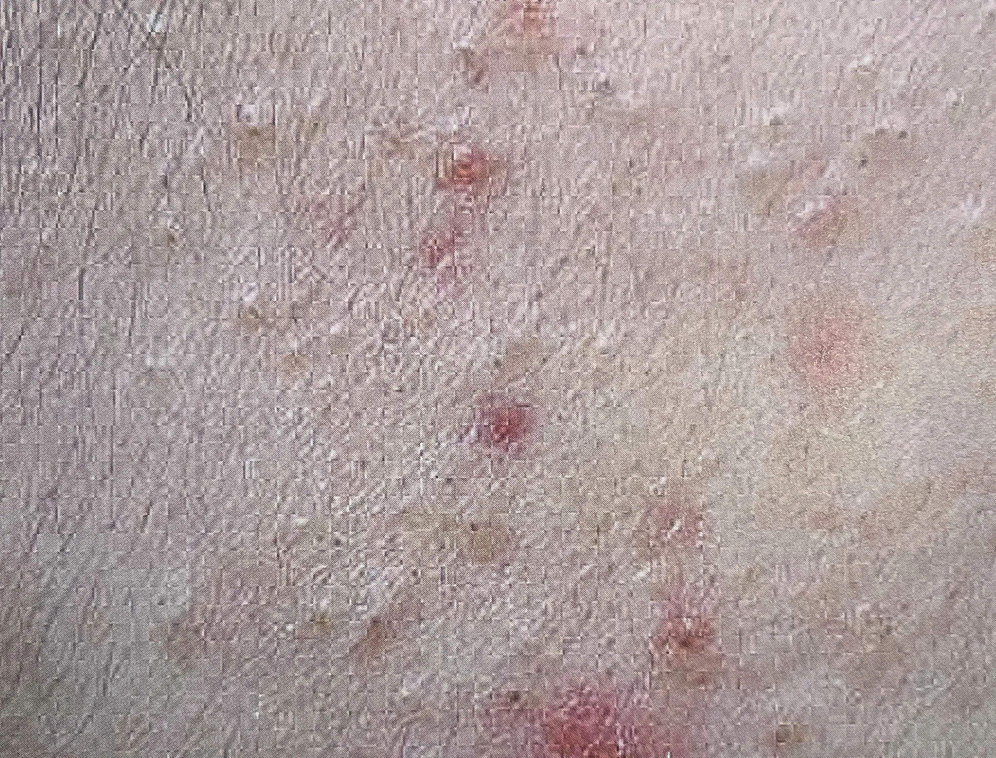 일부는 염증때문에 붉은 구진으로 변하였습니다.