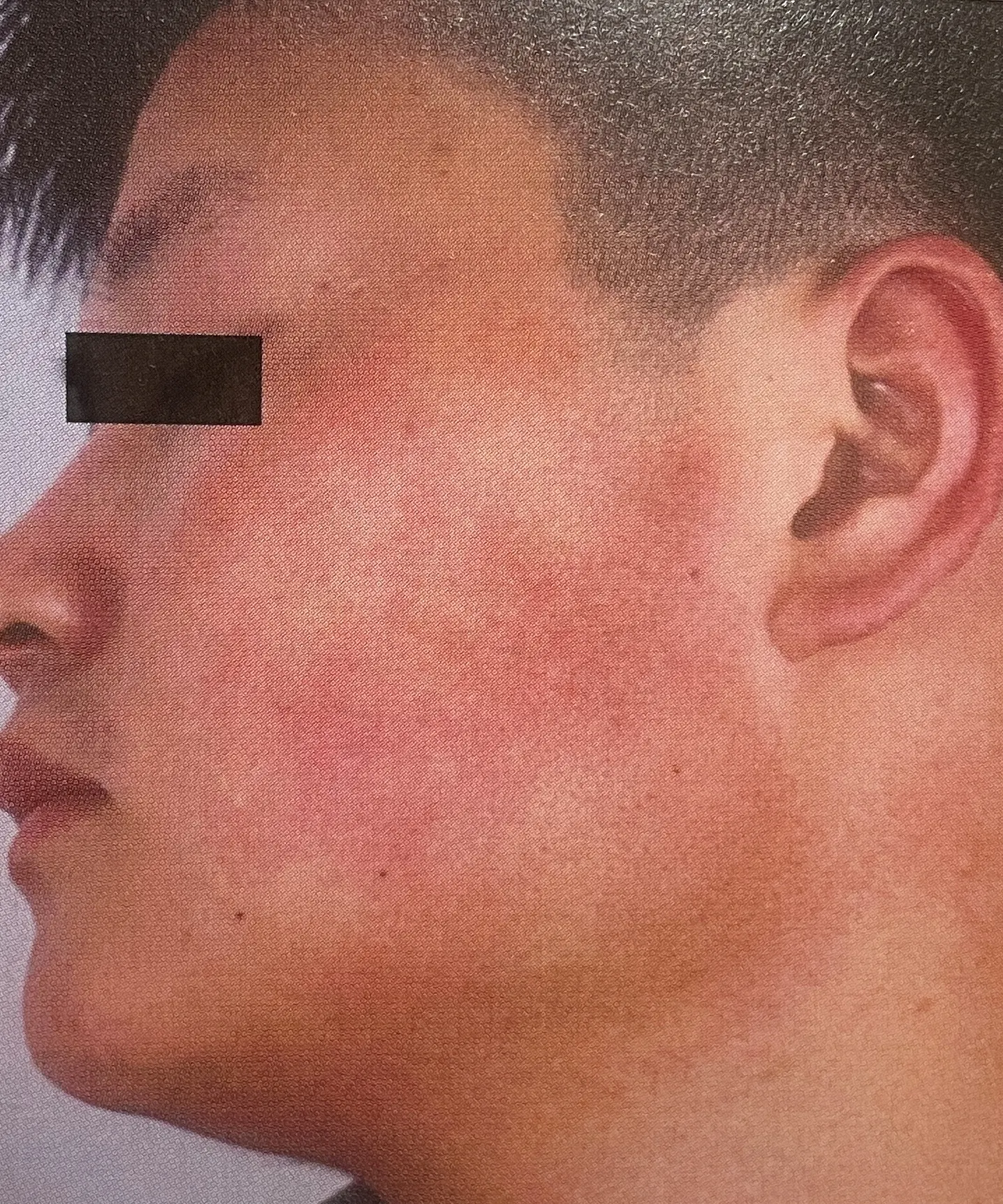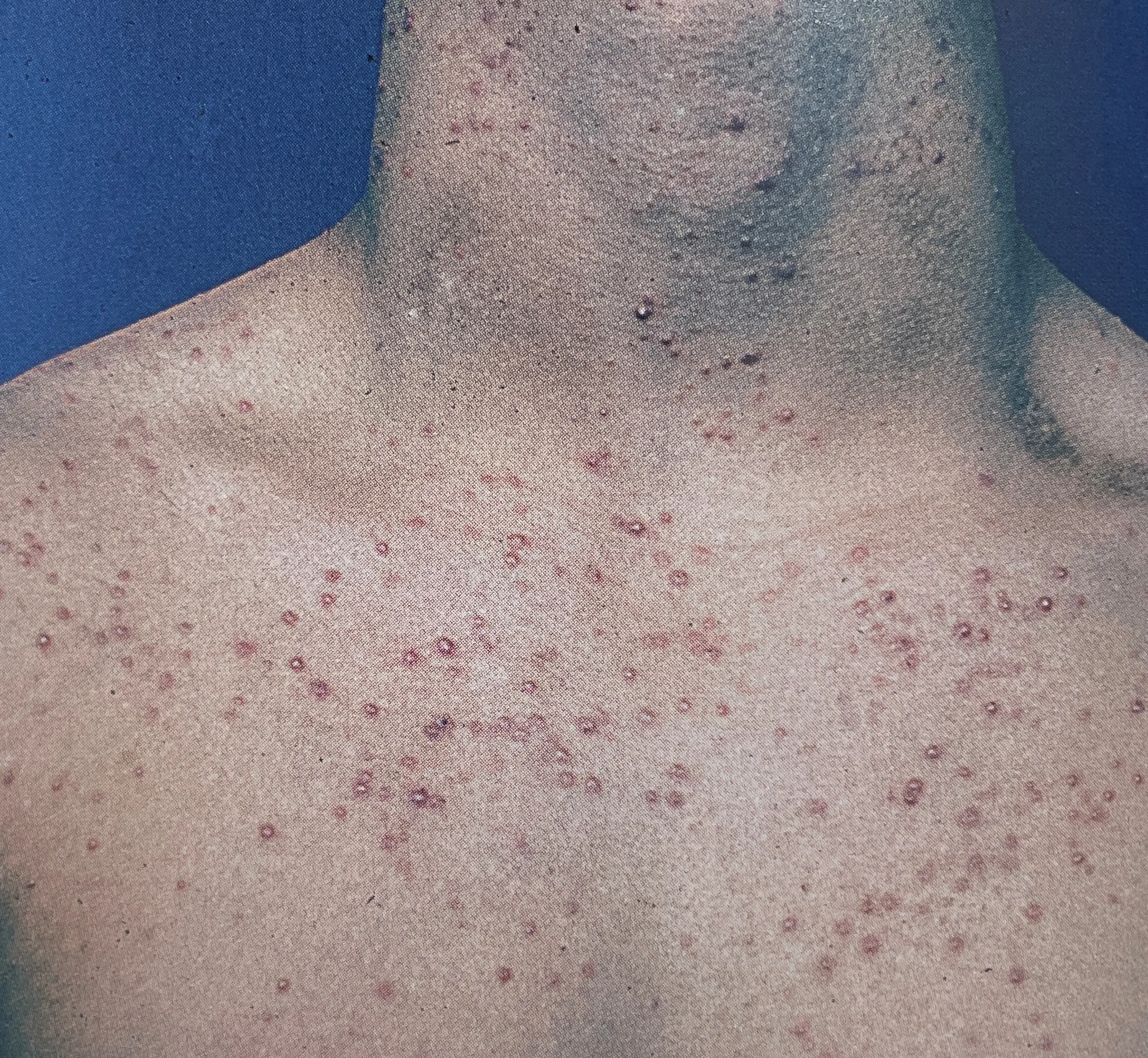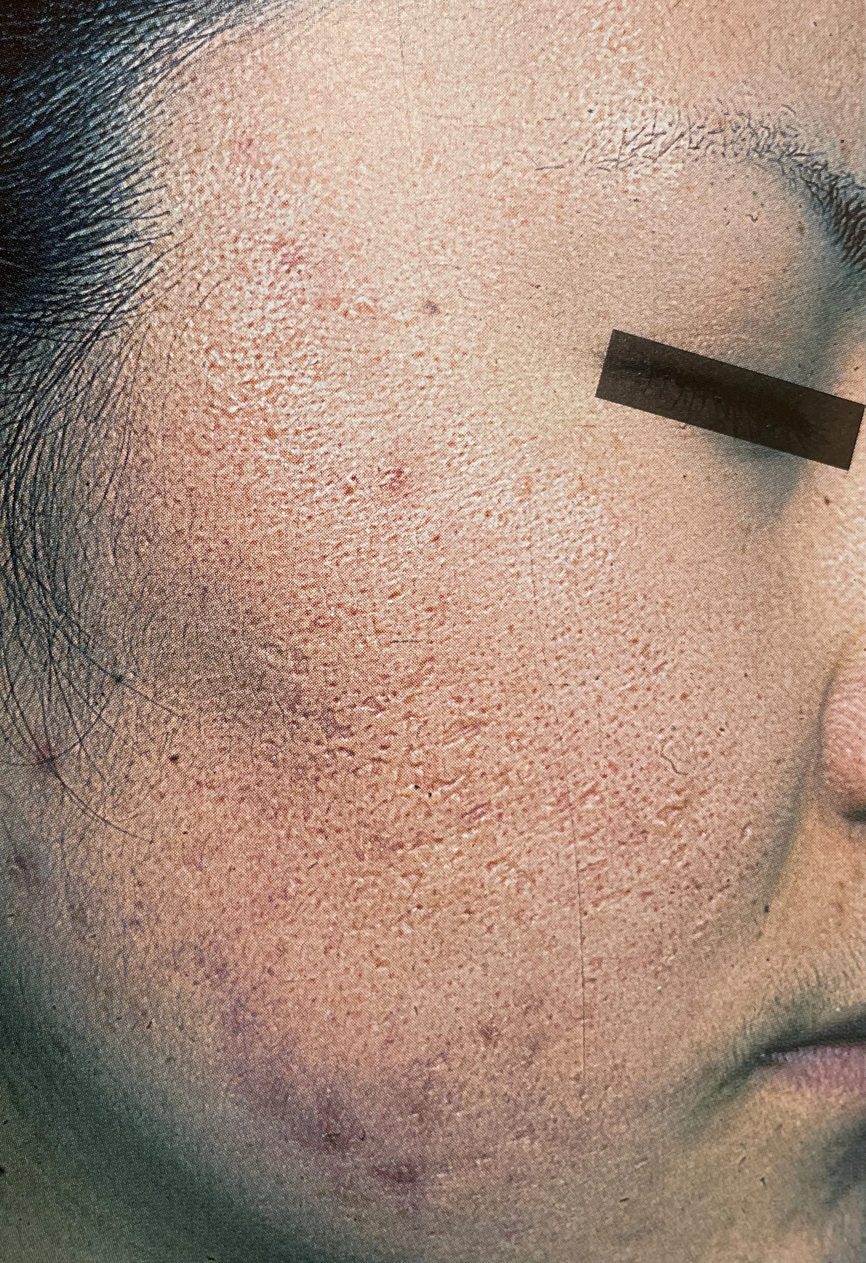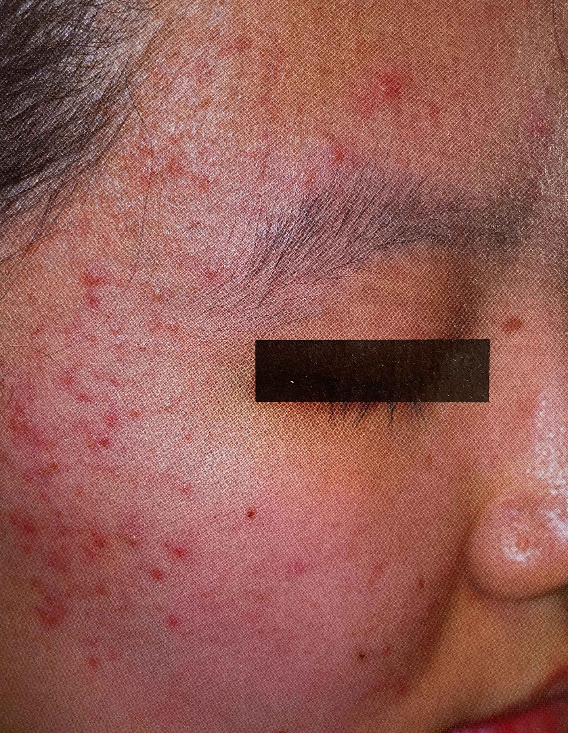 위의 사진은 좁쌀처럼 안면부위에 올라오는 구진입니다.